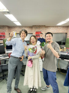 ここで、青森県から来社していたテレワークスタッフ(原則365日テレワークのスタッフ)がステージに登壇。