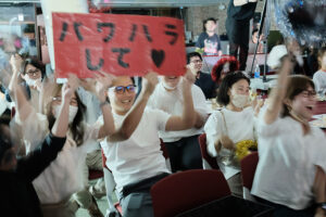 前日リハの様子。ファミレス席を移動しステージに