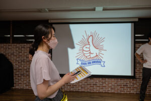 10分間、飽きずに楽しく聞いてもらいたい!の一心で、話し方など何度も練習し本番を迎えましたが、みんなが盛り上げてくれたおかげで、緊張しながらも楽しむことができました。